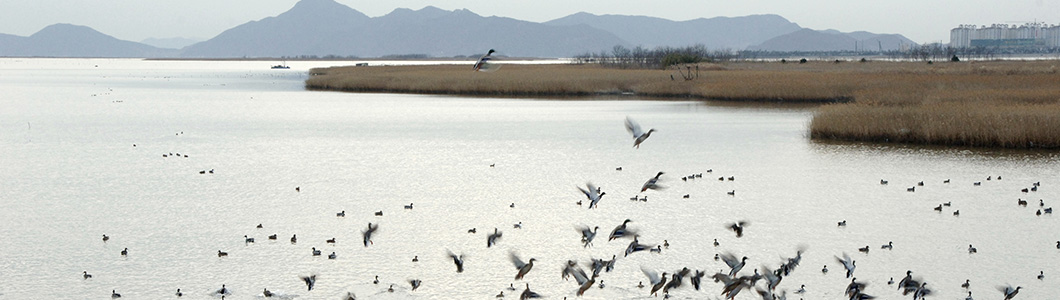 The habitat of migratory birds (the natural monument No. 179) located in Nakdong River downstream has strong delta and dune. With low water depth and wide mud flat, and abundant food, 100,000 migratory birds of 50 spices, including swans and ducks flock here from October to March the following year. This location is a paradise for migratory birds.